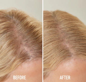The powder uses ultra-fine, pigmented particles that blend seamlessly with your natural hair color. It clings to the hair strands and scalp, instantly creating the appearance of thicker, fuller hair while concealing gray roots in seconds.